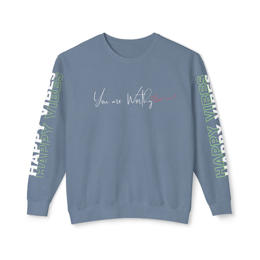 Happy Vibes Motivational Unisex Sweatshirt | You Are Worthy, Uplifting Positive Affirmation