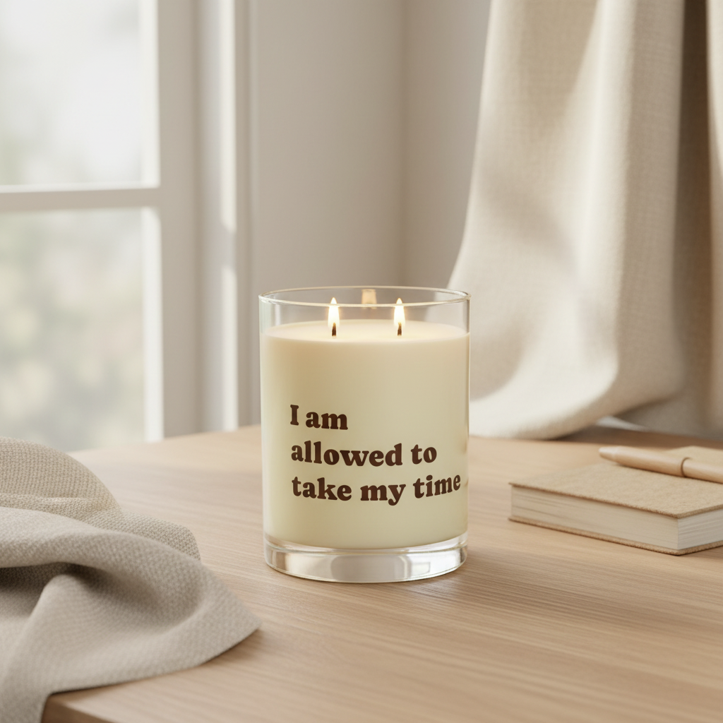 Each I Am Allowed to Take My Time candle is available in three carefully chosen scent profiles designed to support spaciousness and ease. Choose the one that feels right for you.