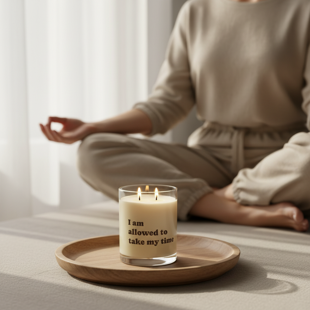 A signature affirmation candle for patience, spaciousness, and unhurried living.