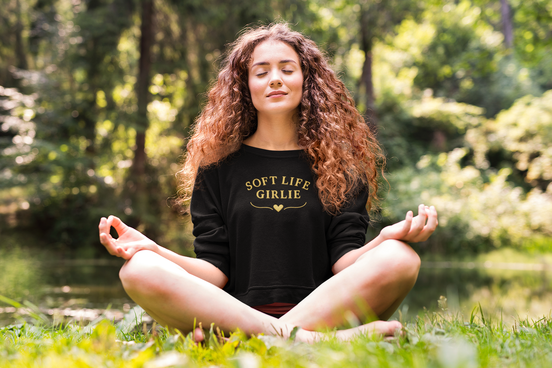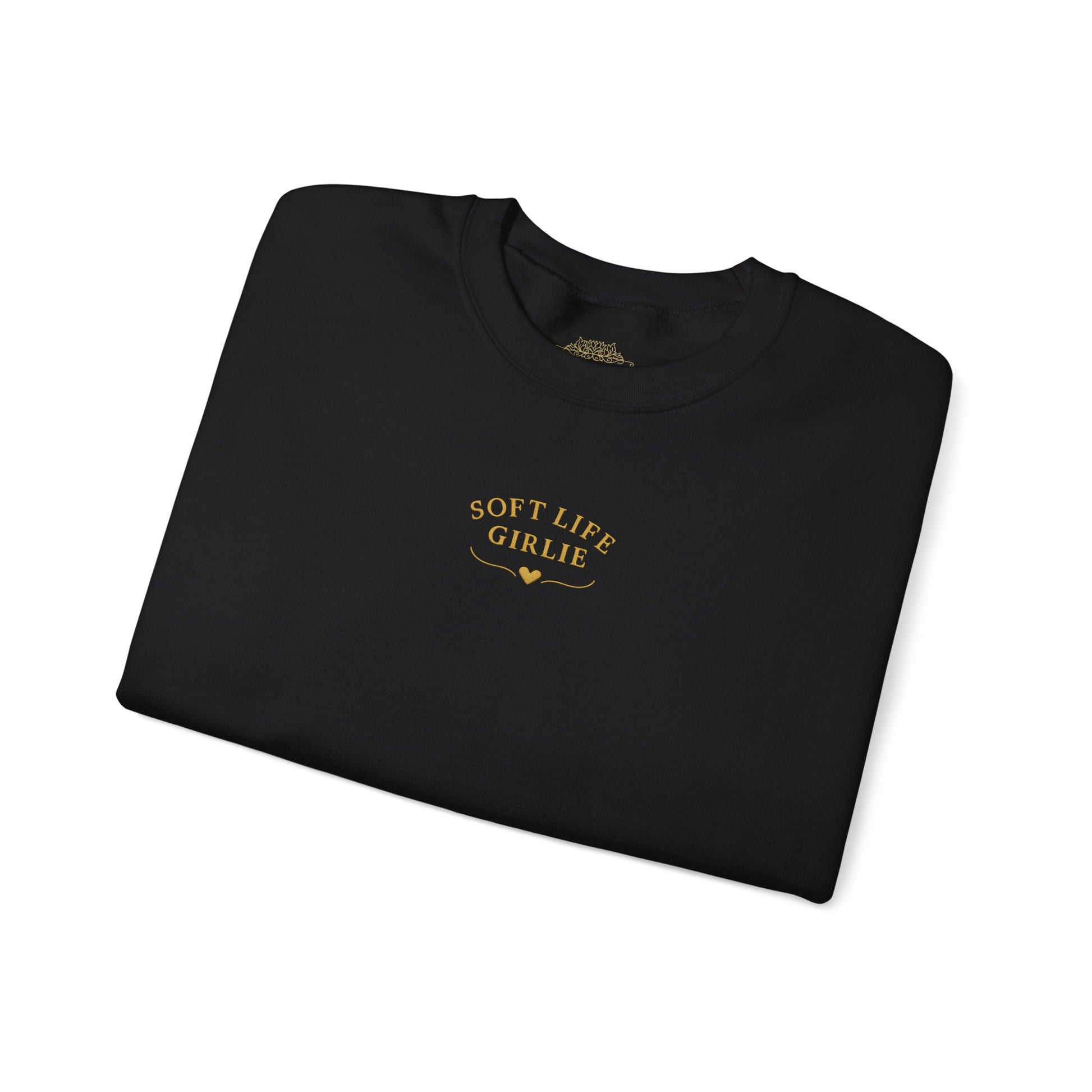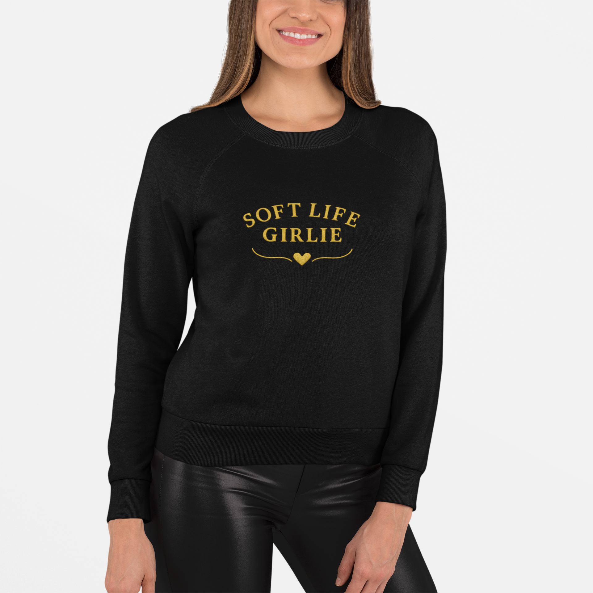 Soft Life Girlie Sweatshirt, Minimal Gold Text Crewneck, Cozy Aesthetic Winter Pullover, Black & Maroon Options | Soft Life Society