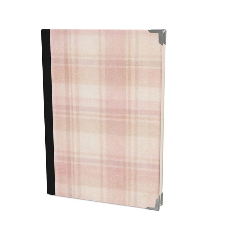Wrapped in a Monroe satin fabric hardcover with a soft, refined sheen, this journal features a watercolor plaid in blush, cream, and warm neutral tones. Subtle gold fleck accents add warmth and quiet elegance, while metal-capped corners provide a polished finish and lasting structure.