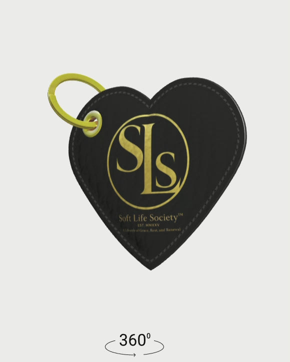 A handcrafted Nappa leather keychain shaped as a heart — the symbol of the Soft Life Society™ movement. Designed to honor self-love, inner peace, and the beauty of choosing yourself every day. Finished with the gold SLS Crest, this keepsake is a gentle reminder to move through life with grace, rest, and renewal.