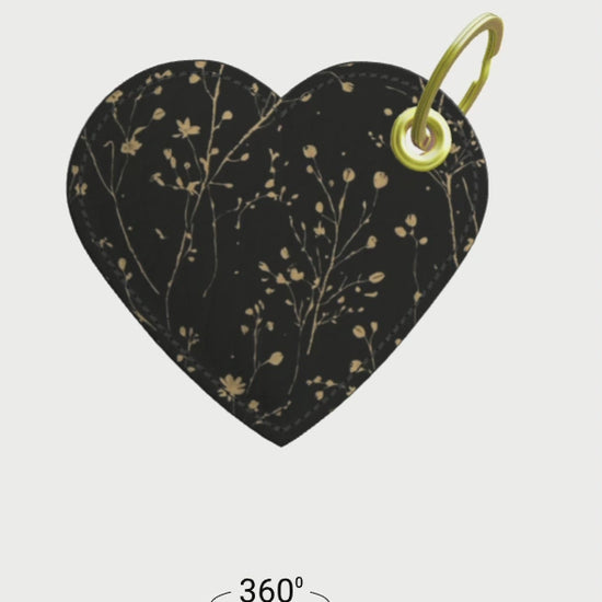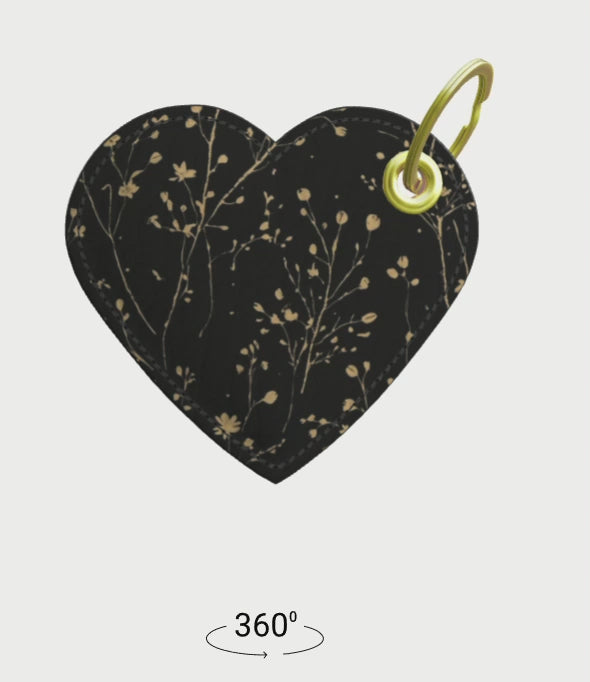 Wrapped in smooth black leather and adorned with delicate gold botanical detailing, the Noir Botanica Heart Keychain is a refined accessory designed to move with you—quietly elegant, effortlessly personal.