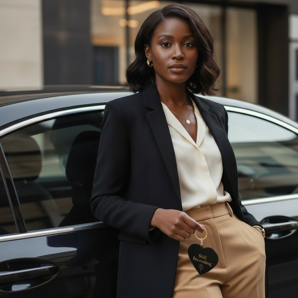 The Still Becoming™ Heart Keychain is a quiet reminder that where you are now is part of the process. Designed for seasons of healing, rebuilding, and self-trust, it features the affirmation Still Becoming in gold foil with a single gold rose—symbolizing patience, growth, and becoming in your own time.